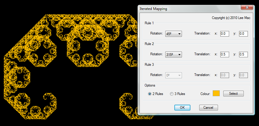 The program available for download offers this functionality. The user may choose to apply two or three rules, each with a rotation and/or a translation. In this way, one can generate many famous figures, such as Sierpinski's Triangle, or a De Rham Curve.